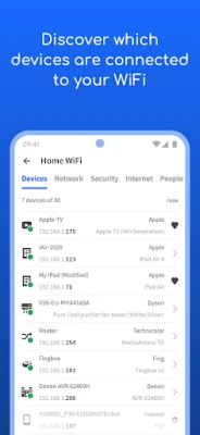 இணைய இணைப்பு மெதுவாக இருக்கிறதா அல்லது உங்கள் வைஃபை பயன்பாடு எதிர்பாராத விதமாக அதிகமாக இருக்கிறதா? உங்கள் அனுமதி இல்லாமல் யாரேனும் உங்கள் நெட்வொர்க்கை பயன்படுத்துகிறார்கள் என்ற சந்தேகம் உள்ளதா? அல்லது உங்கள் தனிப்பட்ட நெட்வொர்க் பாதுகாப்பானதுதானா என்ற கவலை உள்ளதா? Fing பயன்பாடு, இந்த அனைத்து கேள்விகளுக்கும் பதிலளித்து, உங்கள் இணைய உலகில் முழுமையான கட்டுப்பாட்டை வழங்குகிறது. உலகின் முன்னணி நெட்வொர்க் ஸ்கேனர் எனும் பெருமையுடன், Fing உங்கள் வைஃபை உடன் இணைக்கப்பட்டுள்ள ஒவ்வொரு சாதனத்தையும் உடனடியாக கண்டறிந்து, அவற்றின் முழு விவரங்களையும் துல்லியமாக அடையாளம் காட்டுகிறது. ரூட்டர் உற்பத்தியாளர்களும் வைரஸ் தடுப்பு நிறுவனங்களும் நம்பும் எங்களின் காப்புரிமை பெற்ற தொழில்நுட்பத்தின் வலிமையை அனுபவிக்கவும்.
