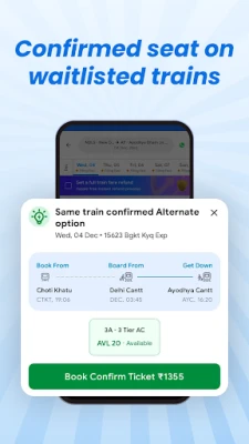 இந்திய ரயில்வே பயணங்களுக்கான உங்கள் நம்பகமான துணையைத் தேடுகிறீர்களா? ixigo, இந்தியாவின் கோடிக்கணக்கான பயணிகளால் மிகவும் விரும்பப்படும் மற்றும் 4.7 நட்சத்திர மதிப்பீடு பெற்ற ஆப், உறுதிப்படுத்தப்பட்ட பயண அனுபவத்தை வழங்குகிறது. ஐ.ஆர்.சி.டி.சி அங்கீகாரம் பெற்ற இந்த செயலியின் தனித்துவமான 'மாற்று பயணத் திட்டம்' மூலம், காத்திருப்புப் பட்டியல் உறுதிப்படுத்தப்படாவிட்டால், மூன்று மடங்கு பணத்தைத் திரும்பப் பெறும் உத்தரவாதத்துடன் உங்கள் பயணம் எப்போதும் கன்ஃபார்ம். கூகுளால் சிறந்த 'இந்தியாவில் தயாரிக்கப்பட்ட' செயலியாக அங்கீகரிக்கப்பட்ட ixigo உடன் உங்கள் பயணத்தைத் திட்டமிடுவது இப்போது மிக எளிது.