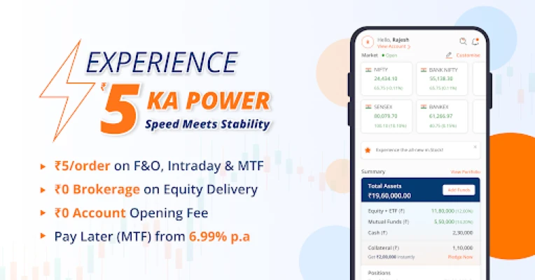 மிராய் அசெட் வழங்கும் m.ஸ்டாக் முதலீட்டு செயலியுடன் உங்கள் பங்குச் சந்தை பயணத்தைத் தொடங்குங்கள். டிமேட் கணக்கு திறந்து பங்குகள், மியூச்சுவல் ஃபண்டுகள், ஐபிஓக்கள் மற்றும் ஈடிஎஃப்களில் முதலீடு செய்யுங்கள். மேம்பட்ட வர்த்தக கருவிகளுடன் ஜீரோ அல்லது குறைந்த தரகுடன் வர்த்தகம் செய்யுங்கள்.