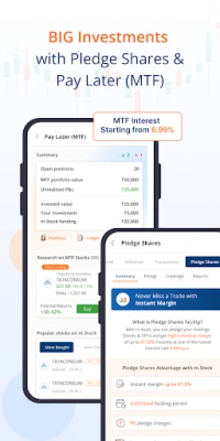 m.Stock-ஐ வேறுபடுத்துவது அதன் நம்பகத்தன்மையும், புரட்சிகரமான கட்டண அமைப்பும் ஆகும். 100 கோடிக்கும் அதிகமான வர்த்தகங்களை வெற்றிகரமாகச் செயல்படுத்திய அனுபவம், எங்கள் திறனுக்கு சான்று. இன்ட்ராடே வர்த்தகம், F&O மற்றும் MTF வர்த்தகங்களுக்கு ஒரு ஆர்டருக்கு வெறும் ₹5 தரகு கட்டணம் மட்டுமே. ஈக்விட்டி டெலிவரி, பரஸ்பர நிதிகள் மற்றும் IPO முதலீடுகளுக்கு எந்தவித தரகு கட்டணமும் இல்லை என்பது குறிப்பிடத்தக்கது. Pay Later (MTF), பங்குகளை பிளட்ஜ் செய்தல் (Pledge Shares) மற்றும் உடனடி மார்ஜின் போன்ற சிறப்பு நன்மைகள் உங்கள் வர்த்தக பலத்தை அதிகரித்து, சந்தையில் நீங்கள் முன்னோக்கி இருக்க உதவுகிறது. m.Stock உங்கள் நிதி வளர்ச்சிக்கான உறுதியான அடித்தளத்தை அமைக்கிறது.