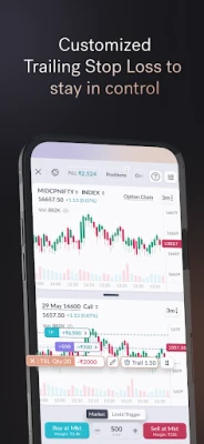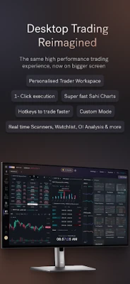 சஹி AI மற்றும் சந்தை நுண்ணறிவு அம்சங்கள் மூலம் வர்த்தகத்தில் ஒரு படி மேலே இருங்கள். சஹி AI பகுப்பாய்வு நிகழ்நேர சிக்னல்களையும், சந்தையை உந்தும் முக்கியமான செய்திகளையும் வழங்குகிறது. பரபரப்பான பங்குகள் அம்சம், ப்ரேக்அவுட்கள், வால்யூம் ஷாக்கர்ஸ் மற்றும் பங்குகளின் வேகத்தை உடனுக்குடன் கண்காணிக்க உதவுகிறது. 20+ சந்தை ஸ்கேனர்கள் மூலம் OI மாற்றங்கள், 52 வார உச்சம்/குறைவு மற்றும் வால்யூம் ஷாக்கர்ஸ் போன்ற முக்கியமான தகவல்களை நிகழ்நேரத்தில் அணுகலாம். மேலும், அட்வான்ஸ்டு F&O அம்சங்களான வியூக வடிவமைப்பாளர் மூலம் பல-முனை வியூகங்களை உருவகப்படுத்தி, லாப வாய்ப்புகளைக் கண்டறிந்து, தகவலறிந்த வர்த்தகங்களை மேற்கொள்ளலாம். ஒரே தட்டலில் அனைத்து திறந்த நிலைகளிலிருந்தும் வெளியேறும் '1-டாப் எக்சிட்' வசதி, பதட்டமில்லா வர்த்தகத்தை உறுதிசெய்கிறது. உங்கள் விருப்பமான குறியீடுகள் மற்றும் ஹாட்கீகளைக் கொண்டு தனிப்பயன் தளவமைப்புகளை உருவாக்கிக் கொள்ளுங்கள்.